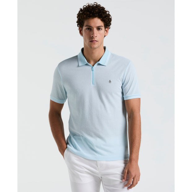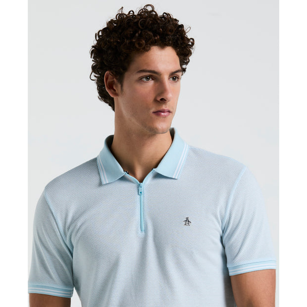 Jacquard Tipped 1/4 Zip Polo Shirt In Crystal Blue