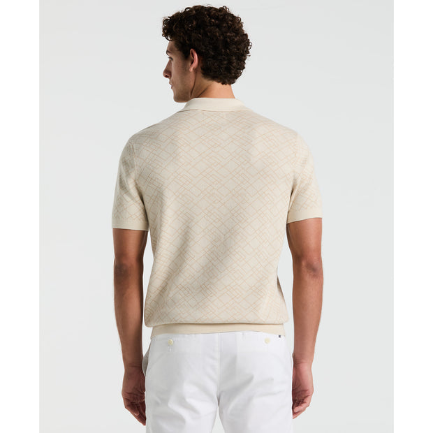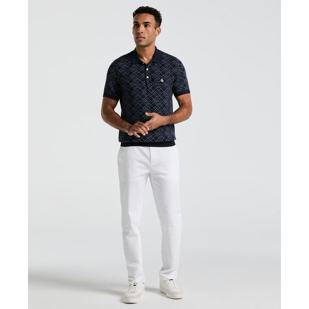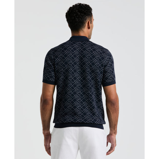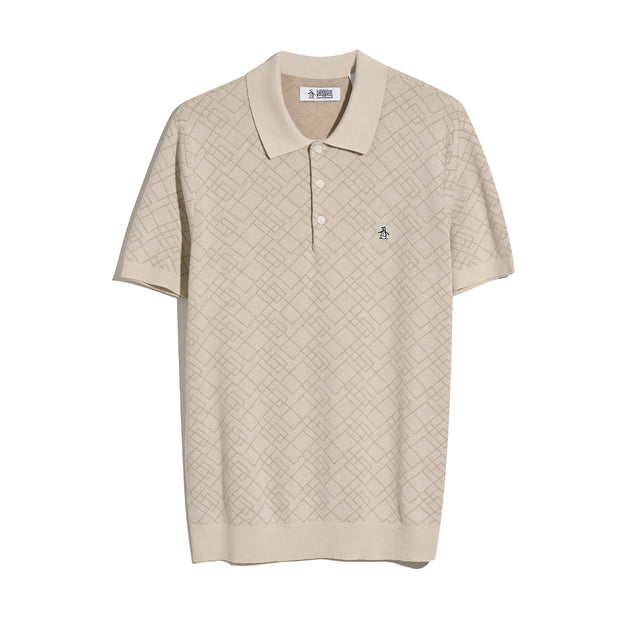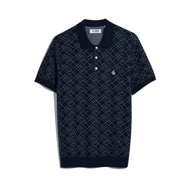 Step up your style game with our Jacquard Geometric Sweater Polo Shirt. This polo combines a classic polo-style collar with an intricate geometric pattern, offering a refined yet contemporary look. It's designed with ribbed cuffs and hem for a clean finish and a straight hem for versatile styling. Featuring our signature Sticker Pete logo at the left chest and short sleeves, it's the perfect pick for effortless cool.