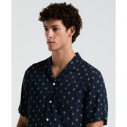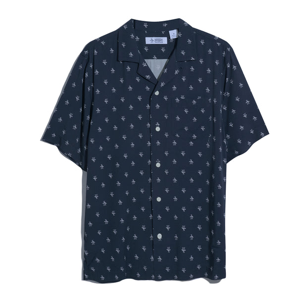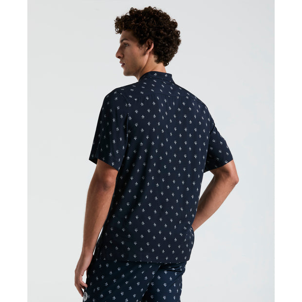 Covered from top to bottom in mini versions of our popular mascot Pete, this Original Penguin men’s short sleeve button-up shirt offers effortlessly cool casual style. Channeling Pete’s suave vibe, this shirt has a camp collar for a relaxed retro look perfect for lounging poolside or strolling through a sunny park. It’s crafted from twill fabric for a lightweight feel great for warm weather, and it’s made from EcoVero™ viscose fibers for sustainability.