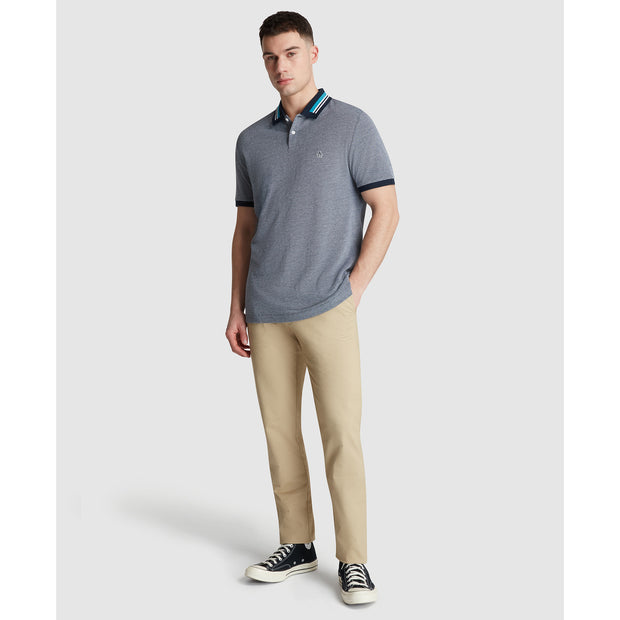 Birdseye Tipped Polo Shirt In Dark Sapphire