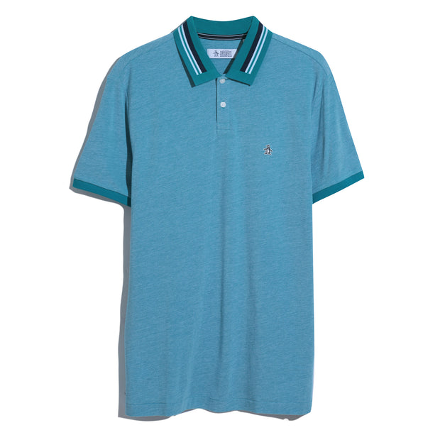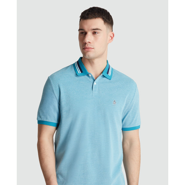Birdseye Tipped Polo Shirt In Mosaic Blue