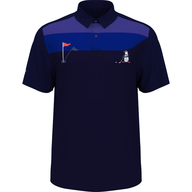 Featuring a playful graphic of our mascot Pete golfing, this Original Penguin men’s polo shirt is a fun option for both the course and everyday casual wear. The men’s polo top is crafted from a lightweight single knit fabric for comfort in any weather conditions. It has moisture-wicking technology to help keep you dry on hot and humid days, and it’s enhanced with a generous amount of stretch to let you bend and reach without feeling constricted. A smart choice for eco-conscious shoppers, the polo collar shirt is made from 30% recycled polyester.