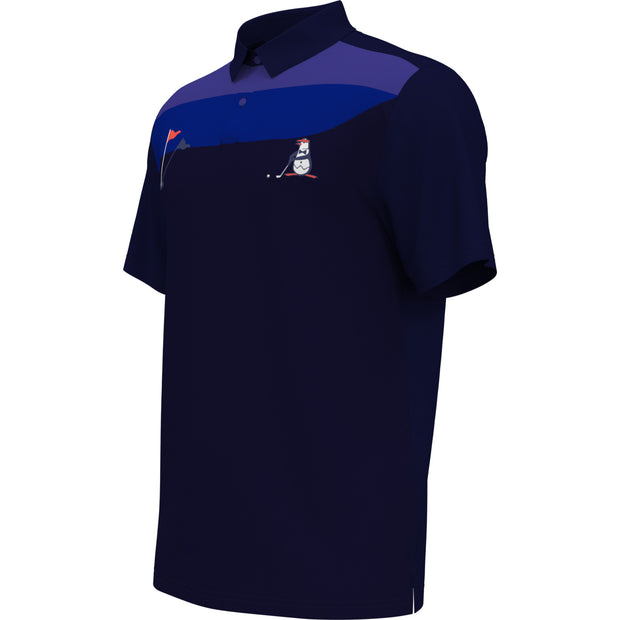 Pete On The Green Block Print Golf Polo Shirt In Black Iris