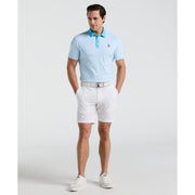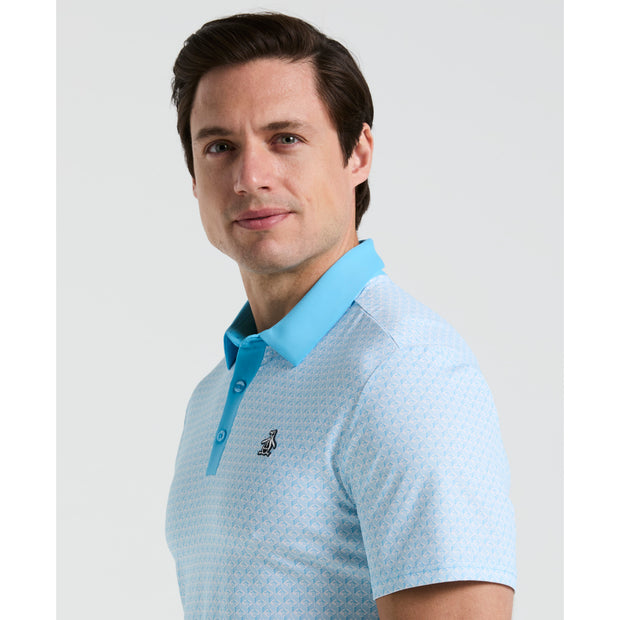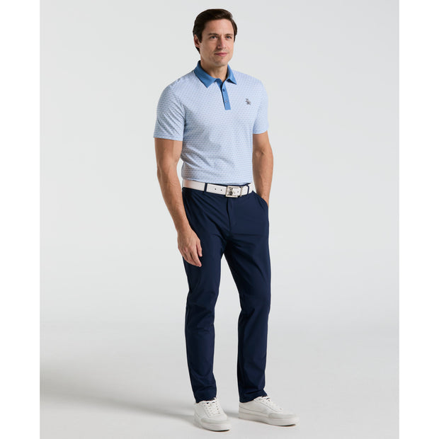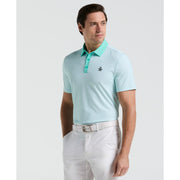 Tee off in style wearing this Original Penguin men's golf polo. Single knit fabrication is lightweight, while added stretch delivers a comfortable fit that lets you bend and flex with ease. Moisture-wicking properties keep you feeling fresh and dry even as your game play heats up. A sleek self-collar and 3-button placket add classic men's polo details and tailoring.