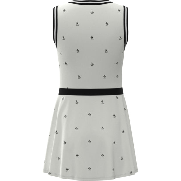 Get your glam slam on with this women’s sleeveless tennis dress from Original Penguin. It features textured rib knit detailing on the v-neckline and armholes and contrast stripes at the waist and down the front chest. Pete's ready to make his mark on the court with an allover print on the dress. Made with a hint of stretch that lets you move freely, this tennis outfit has moisture wicking to help you stay dry and comfortable. Two side pockets complete the look and can hold tennis balls between points. With a fabric blend that includes 30% recycled polyester from plastic bottles, this tennis dress is a definite winner.