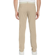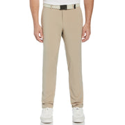 These Original Penguin men's golf pants are versatile basics, built for performance. Durable plain weave fabrication is enhanced with stretch for comfort on and off the course. These golf pants feature moisture-wicking technology and a flat front design for lasting comfort and a contemporary silhouette. The flexible covered elastic waistband is equipped with a silicone printed gripper to keep your shirt in place as you bend and swing. An embroidered Pete logo below the left pocket adds a subtle finishing touch, and with 30% recycled polyester content, these pants are a sustainable style choice you can feel good about.