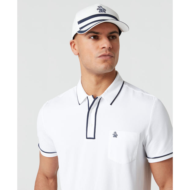 Get enhanced comfort and style on the green with this men's golf polo shirt from Original Penguin. Designed with pique fabric, this golf shirt features raised cords woven into the material for texture and a refined touch. The Earl styling adds a classic look while the added stretch offers an all-around comfortable fit and feel you'll enjoy during or after the game.
