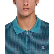 All Over Jacquard 1/4 Zip Sweater Polo Shirt In Teal