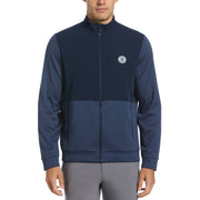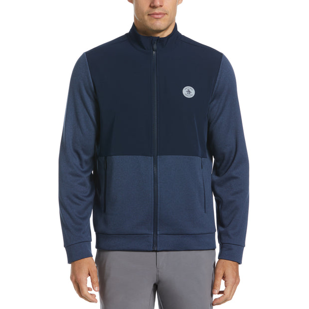 Colour Block Fleece Full Zip Golf Jacket In Black Iris Bijou Heather