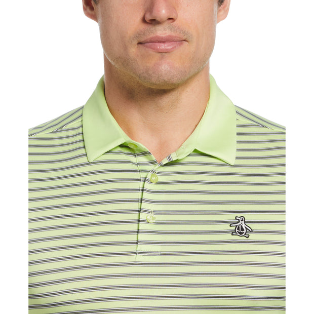 Classic stripes, heritage styling and high-performance materials meet in this classic Original Penguin men’s polo. Made with jersey fabrication, it’s incredibly soft against the skin, while added stretch offers a superior fit. This polo moves with you, so it's great for hanging out around town, playing with the kids or hitting the golf course. Plus, the classic styling and contrasting solid collar smartens you up nicely for casual dress occasions.