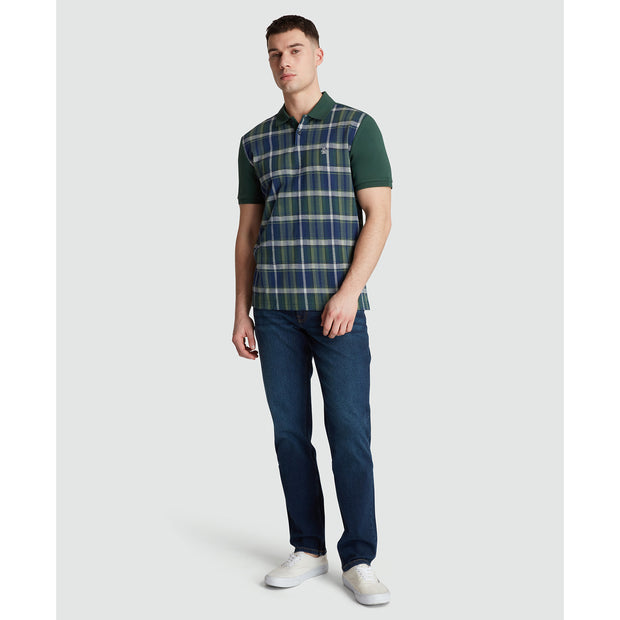 Jacquard Front Plaid Polo Shirt In Sycamore