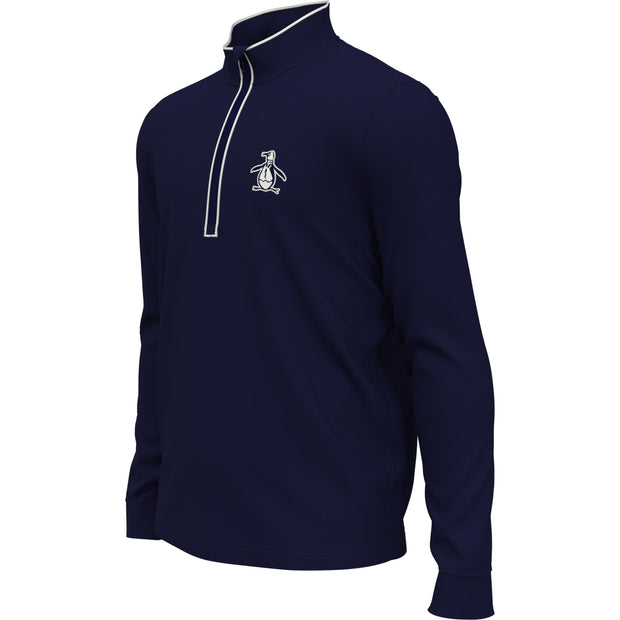 This men's golf sweater from Original Penguin is designed for comfort and elevated style. Featuring a quarter zip closure for adjustable comfort, the golf pullover is made from lightweight, single knit fabric with stretch for a comfortable fit and feel. The classic Earl tipping adds a refined touch to your look.