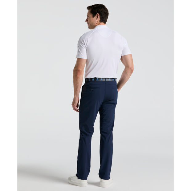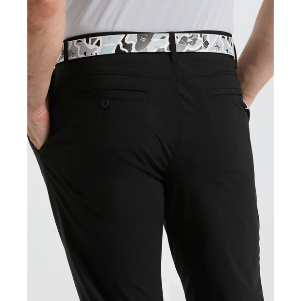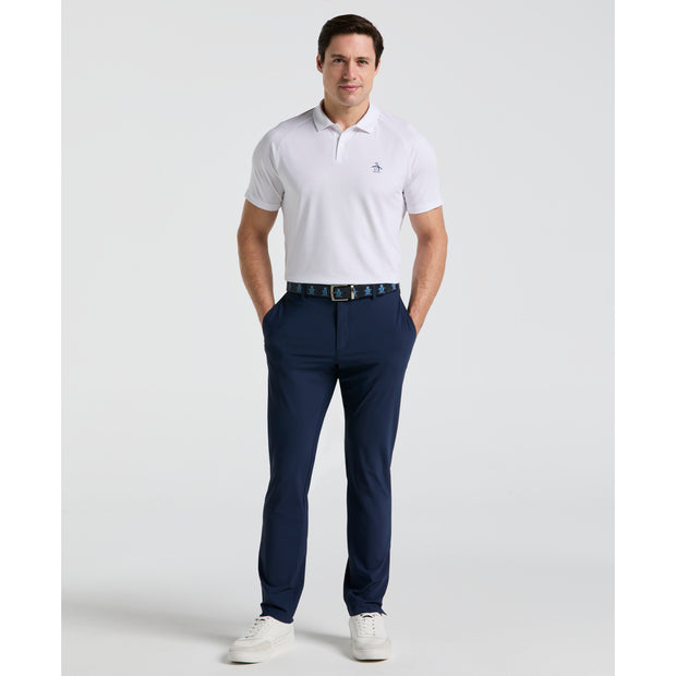 Play in style wearing these Original Penguin men's golf trousers. Tricot fabrication gives them a soft feel that's sturdy too, while added stretch ensures you can play your way with ease of movement. These flat-front golf trousers have a simple, streamline appearance that will look great with all your favorite golf attire
